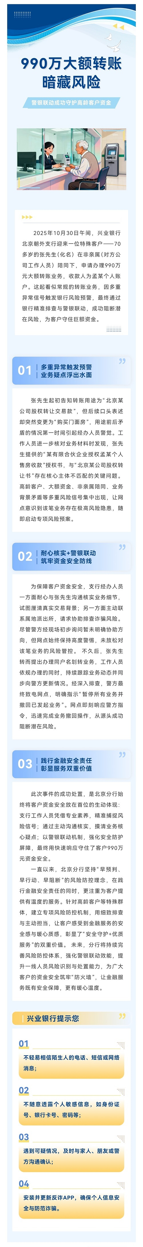 “以案说险”——990万大额转账暗藏风险 银行多维排查+警银联动成功守护高龄客户资金